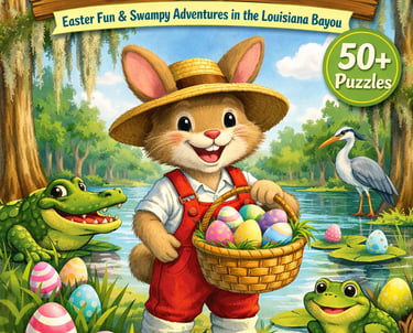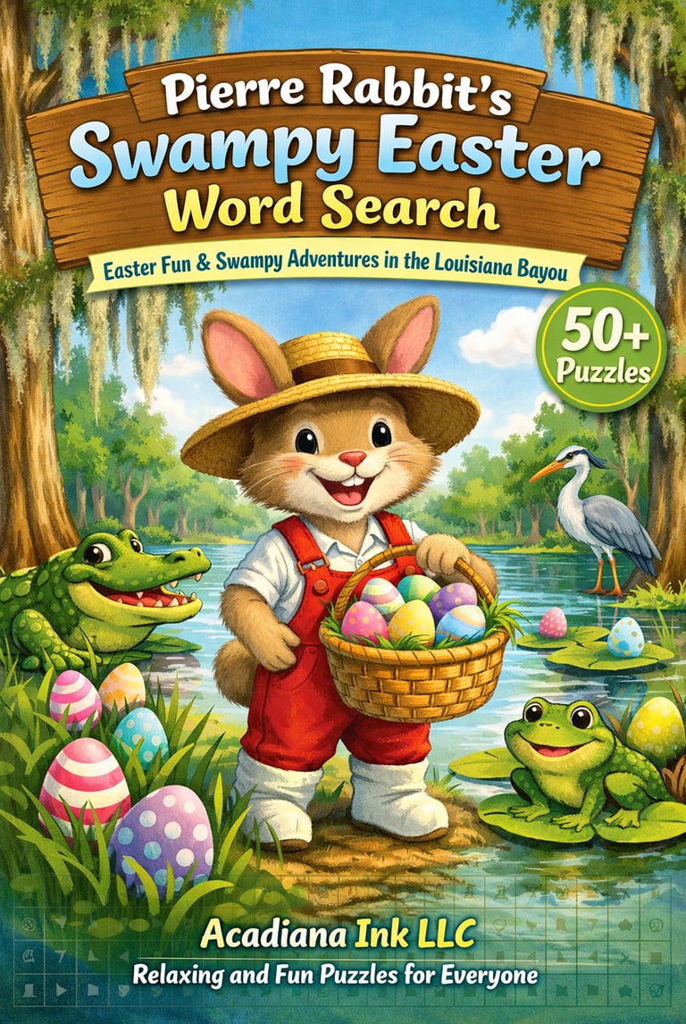 Pierre Rabbit’s Swampy Easter Word Search is a seasonal puzzle book combining Easter traditions with the rich wildlife and culture of Louisiana’s Jean Lafitte Preserve.